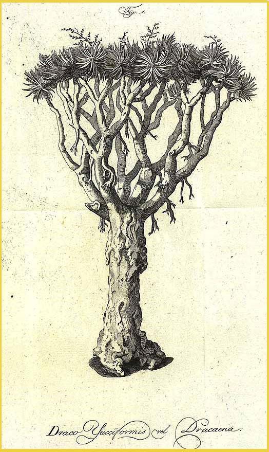 Desde antiguo, los viajeros habían llegado hasta estas islas buscando un dragón cuya sangre tenía propiedades curativas. La sangre de dragón, sin embargo, no se extraía de este animal legendario, sino de un árbol que de todos modos toma su nombre de ese ser fantástico, el drago. La confusión viene del color de la savia de este árbol, que se vuelve roja en contacto con el aire y se asemeja así a la sangre, por se pensó que se podía usar de manera medicinal para todo lo que tuviera que ver con la sangre, por ejemplo cerrar heridas, cuando no con la prolongación de la vida; así, en el Antiguo Egipto parece que fue usado para embalsamar y momificar. La propia longevidad que pueden alcanzar estos árboles, como el espectacular ejemplar de Icod de los Vinos de Tenerife, al que se le atribuyen 3.000 años de edad, puede justificar el hecho de que durante siglos la “sangre de dragón” haya sido vista como un elixir mágico que alarga la vida.