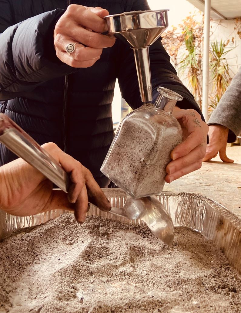 Objetivos: cocinar las propuestas de los alumnos para rediseñar la tradicional zambomba, utilizando además materiales que provee el paisaje jerezano. También preparar las cenizas de material vegetal para su posterior uso en los talleres.